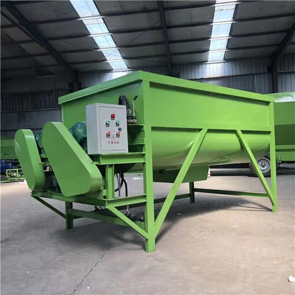 卧式双轴草料板料机主要针对养殖搅拌青饲料混合均匀,主要有三大优势