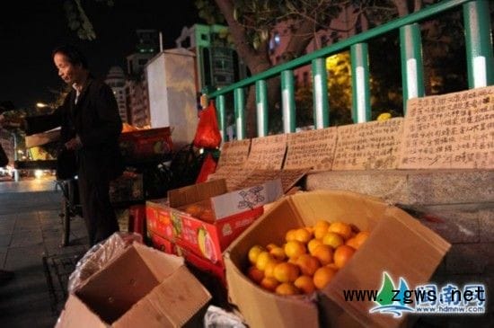 “那里人多,比较有人买。晚上我就停下来,在街头摆一会儿。”抽一口烟,赖阿伯盯着从他摊前走过的每个人,一有人靠近,他就凑上前去,夸起自己的水果来,“很甜的,保证不酸”。