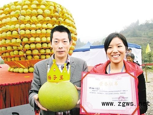 首届东温泉五布柚采摘节上,倪金平夫妇以1.5万元拍得柚子王。据悉,柚子节拍卖善款将全部捐给当地关爱弱势群体组织。不少游客泡过温泉后,不忘买些柚子回家。记者张军兴摄